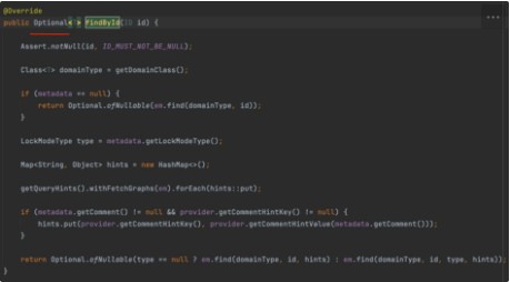 반환타입이 Optional이며, 파라미터는 Entity의 Id 값이다.