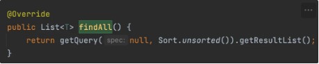 정의된 규칙에 맞게 메서드를 선언하면 해당 메서드의 이름을 분석하여 SimpleJpaRepository에서 구현한다.