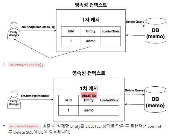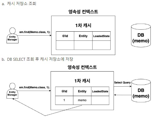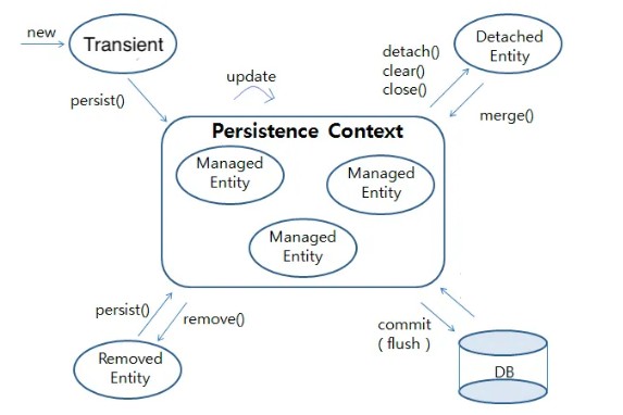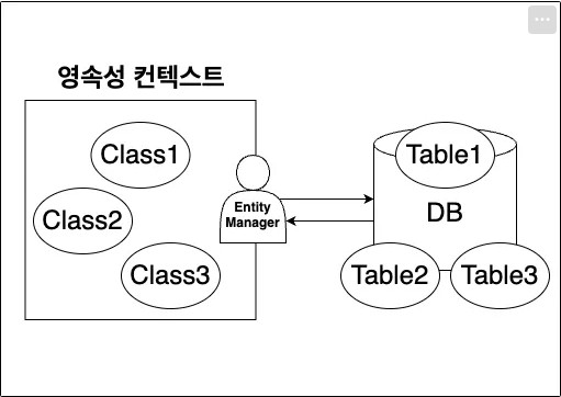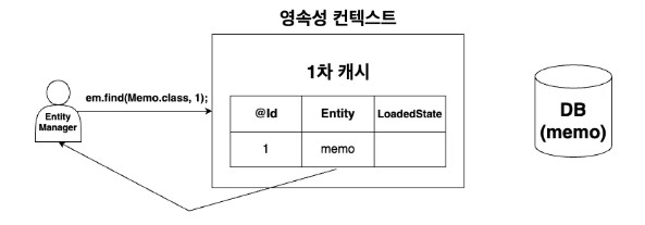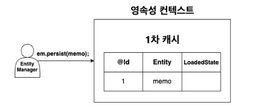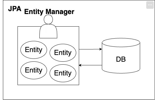 위에서 설명한 과정을 처리하기 위해서 JPA는 영속성 컨텍스트에 Entity 객체를 저장하여 DB와 소통한다.