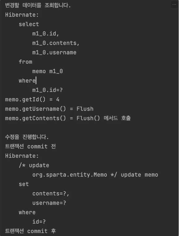 : 조회한 Entity 객체의 값을 변경할 때, 변경된 시간이 자동으로 저장된다.