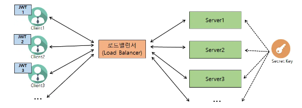 쿠키 세션 방식과 유사하게 JWT 토큰을 Http Header에 실어 서버가 클라이언트를 식별한다.
