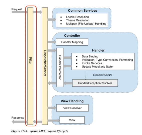 하지만 Filter는 요청이 DispatcherServlet에 의해 다뤄지기 전에 동작한다.