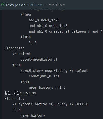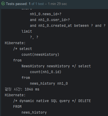 에러를 해결하면 아래와 같이 삭제 쿼리가 한 번만 발생하며, 그와 동시에 속도가 향상된 것을 확인할 수 있다.