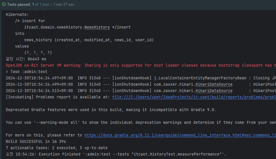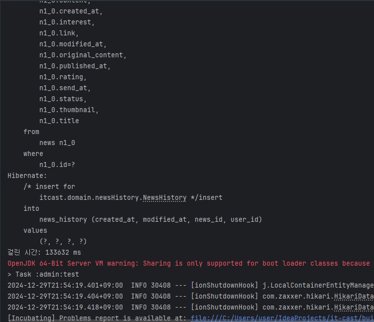 2024-12-30T15:43:22.093+09:00 INFO 28032 --- [ionShutdownHook] com.zaxxer.hikari.HikariDataSource : HikariPool-1 - Shutdown completed.