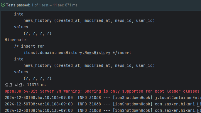 2024-12-30T15:43:22.075+09:00 INFO 28032 --- [ionShutdownHook] com.zaxxer.hikari.HikariDataSource : HikariPool-1 - Shutdown initiated...